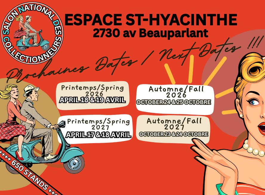 – SNDC Collectors’ Show in St-Hyacinthe, Quebec in April and October each year